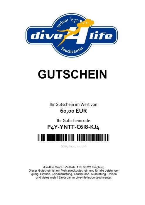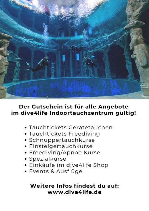 und einlösbar für alle Angebote & Produkte aus dem Dive4Life Portfolio.