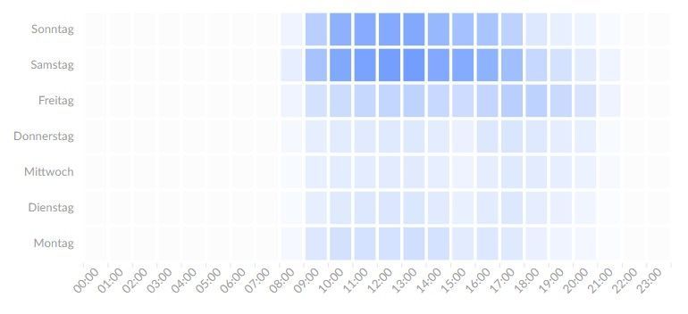 Bitte beachte jedoch, dass wir jedoch keine Auskünfte zu Fragen geben können wie z.B. “Ist an dem Tag viel los?”, da sich dies binnen wenigen Minuten ändern kann. Daher wollen wir dir keine Auskünfte geben, die sich am Ende als Falschinfo herausstellen könnten.
