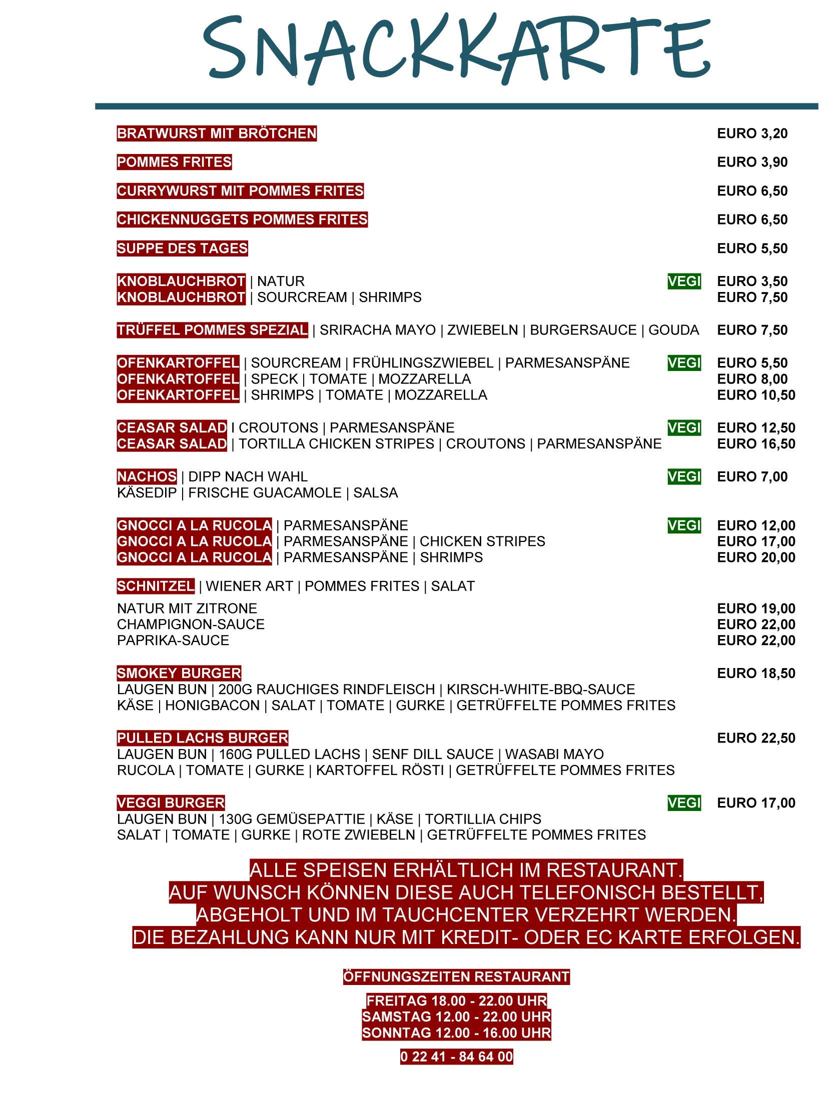 Hier findet ihr die "kleine" Snackkarte. Wir wünschen guten Appetit ;)