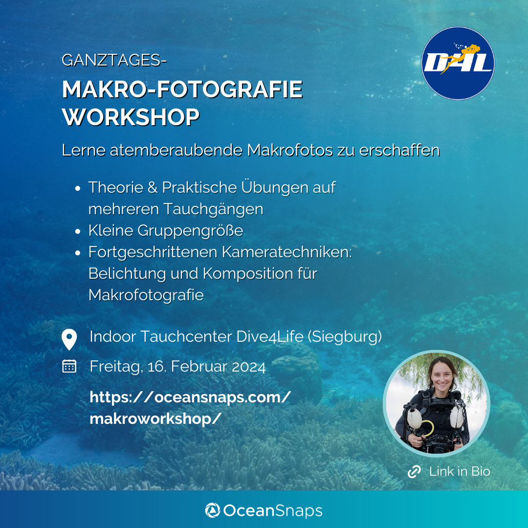 Der Workshop richtet sich an ambitionierte Unterwasserfotograf*innen. Grundkenntnisse in der